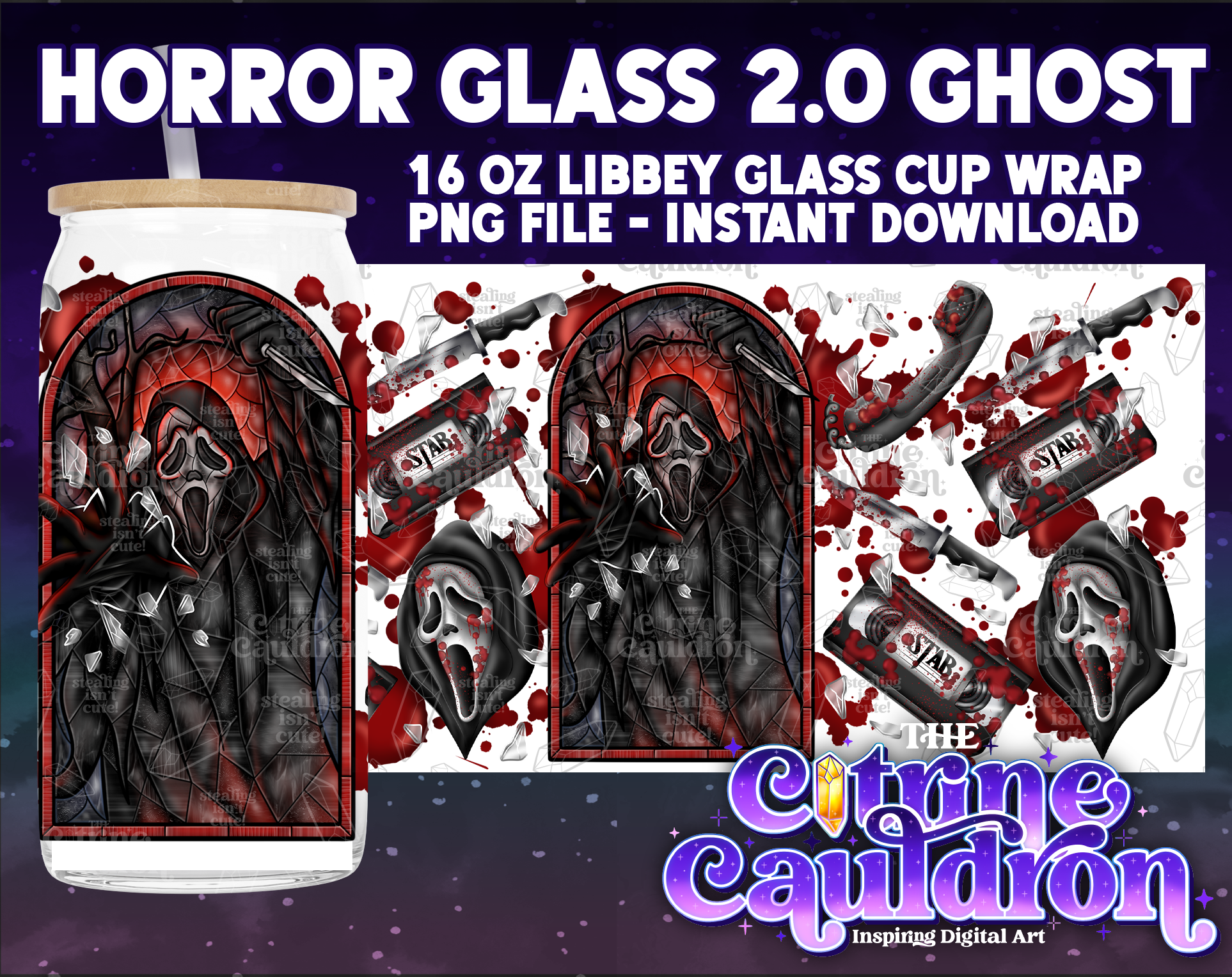 Horror Glass 2.0 Ghost - PNG Wrap for Libbey 16oz Glass Can