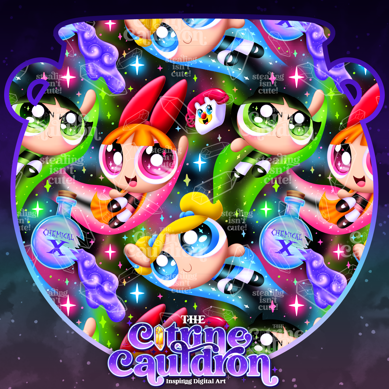 I do not sell or claim ownership to the characters or graphics. They themselves belong to their respective copyright and trademark holders. You are paying for the time spent and The Citrine Cauldron's creative services.